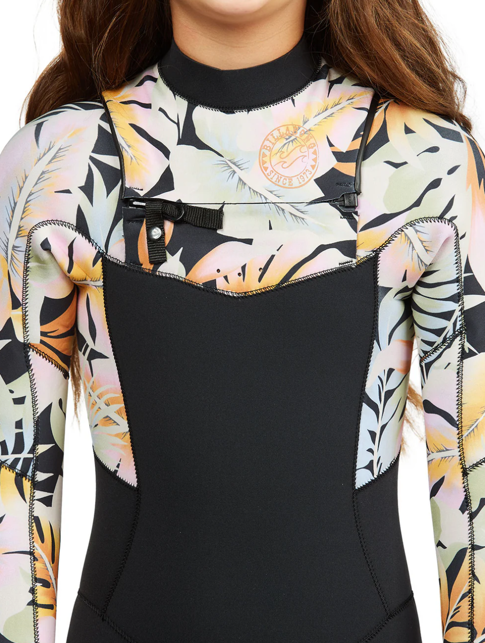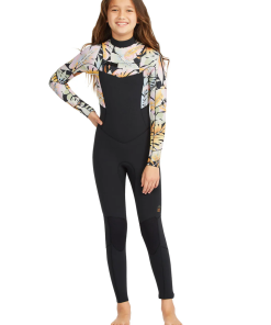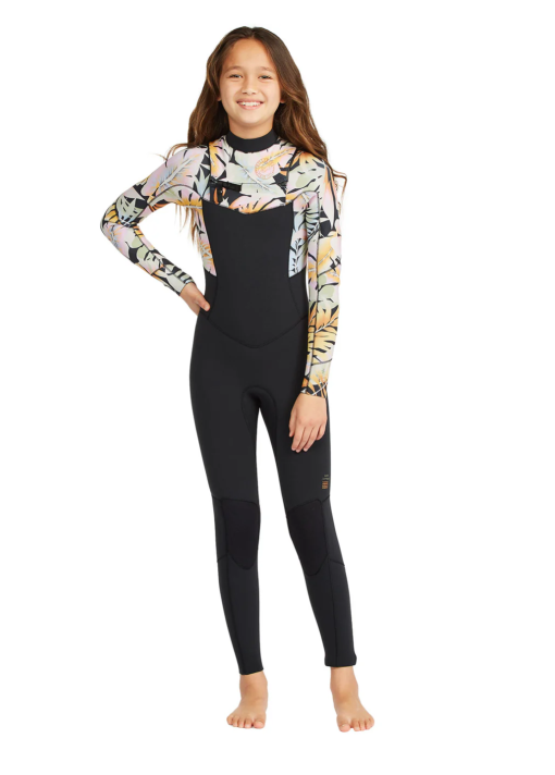 The 4/3 Teen Salty Dayz Full Zip Wetsuit takes us on a tropical safari— welcome to the jungle. Equipped with cutting-edge wetsuit technology, including a chest zip and a mix of Graphene Recycler Plus and Silicon Stretch thermal lining, the Girls’ Surf Capsule Collection full suit is customized with palm printed panels. Combining style, performance, and sustainability, the Salty Dayz wetsuit features conscious construction with partially recycled Superlight Foam neoprene and water-based adhesives.