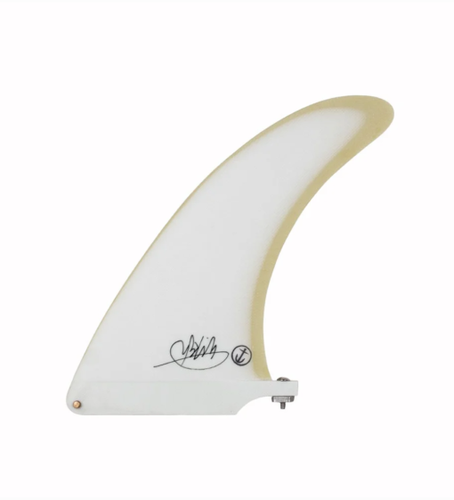 The Mikey February Bonzer comes in two sizes and was made for stylish surfing on any size Bonzer but can also be used in your favourite 2+1 egg or mid-length setup. It’s a fiberglass fin with a cool white and yellow colourway and emblazoned with Mikey’s signature.