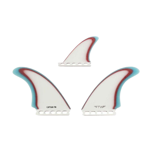 The Tyler Warren Twin es is part of our Limited La Especial Collection. It is a multi-color solid fiberglass layup. Tyler Warren designed this beauty for maximum down the line speed and smooth rail to rail surfing. He also added a trailer fin for stability and more drive. This will compliment any twin-fin board and has become a favorite amongst the Captain Fin Crew!!
