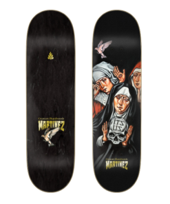 Ripped right off an ancient Medieval canvas and straight onto Milton’s 8.51 x 31.88 ‘IT’S US, Witches’ Pro 1-Off. These three witches of holy cloth are embedded on our classic Stumps shape with raised inks lying in wait for desecration – brushes on canvas by Grand Master Jason Arnold.