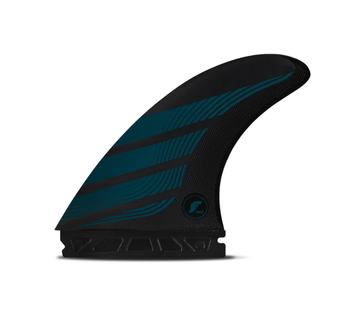 The AM2 is a large size thruster fin set in the rake category built in Alpha construction. Made in Huntington Beach, the Alpha product line combines Bureo’s NetPlus recycled fishing nets with Futures’ Compound 6 (C6) carbon and air infused technology.
