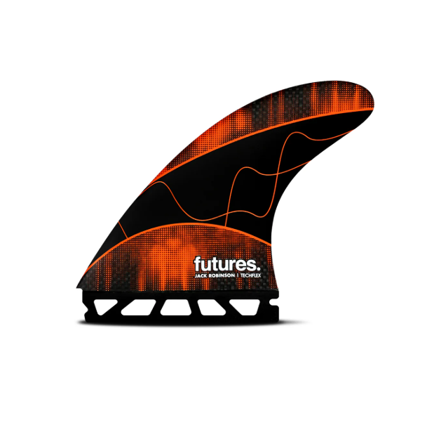 Jack Robinson’s signature Techflex thruster fin is a large size fin in the Rake template category. Developed to suit Jack’s style of surfing above and below the lip, he has been putting it through the paces at some of the best waves in the world with incredible success. The Techflex construction is Jack’s go-to when the waves are pumping and he desires a bit more control from his fins. Techflex fins are engineered to be stiff and light, providing a solid and engaged feel for powerful surfers or powerful conditions. This setup has a smaller center fin than the side fins for increased maneuverability.