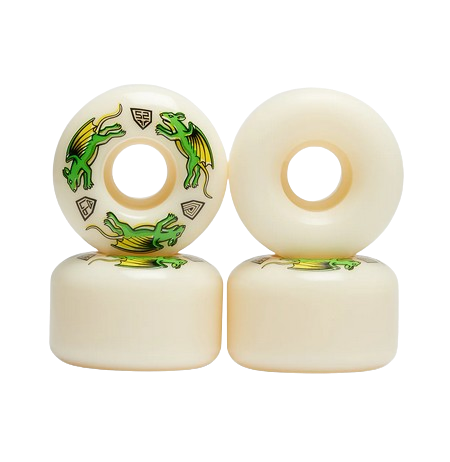 Dragon Formula⢠is Powell Peralta’s latest next generation polyurethane breakthrough. Dragons are mid hardness 88A, 93A and 97A wheels that smooth out rough terrain. Now you can roll over previously unskateable terrain on your way to a skate spot, and then skate it as well or better than before with the same wheels. This is because dragons slide like 99A & 101A wheels and still grip when needed. This makes dragons very special and unique.
